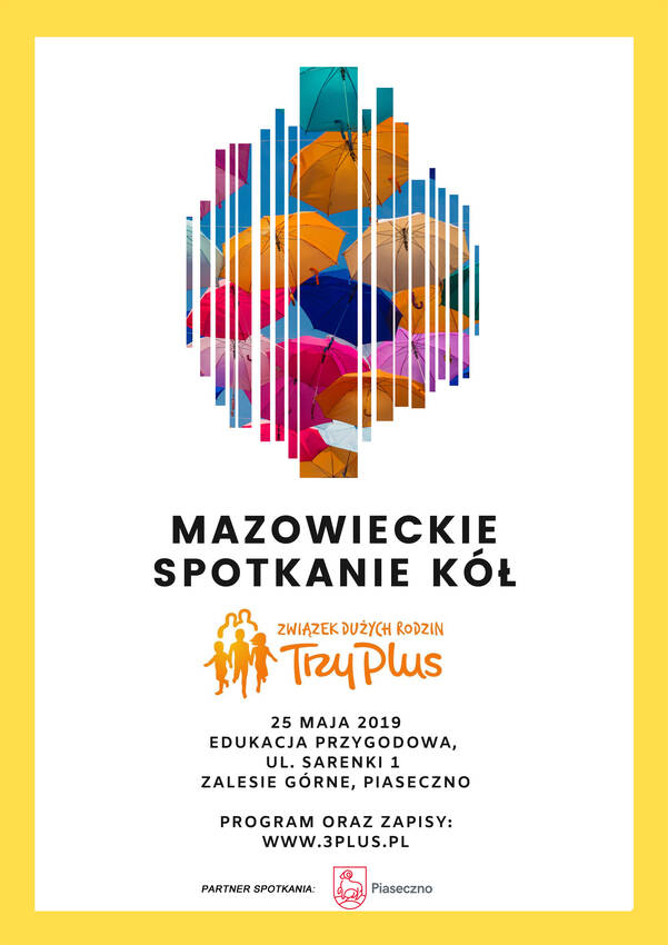 Zapraszamy członków Związku, zarówno należących do Kół ZDR3+, jak i nie zrzeszonych w kołach oraz wszystkie osoby zainteresowanie działaniem na rzecz dużych rodzin na pierwsze regionalne spotkanie kół z woj. mazowieckiego. Spotkamy się 25 maja w sobotę, w Zalesiu Górnym, na terenie Edukacji Przygodowej, ul. Sarenki 1.