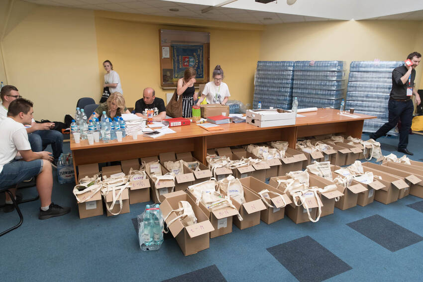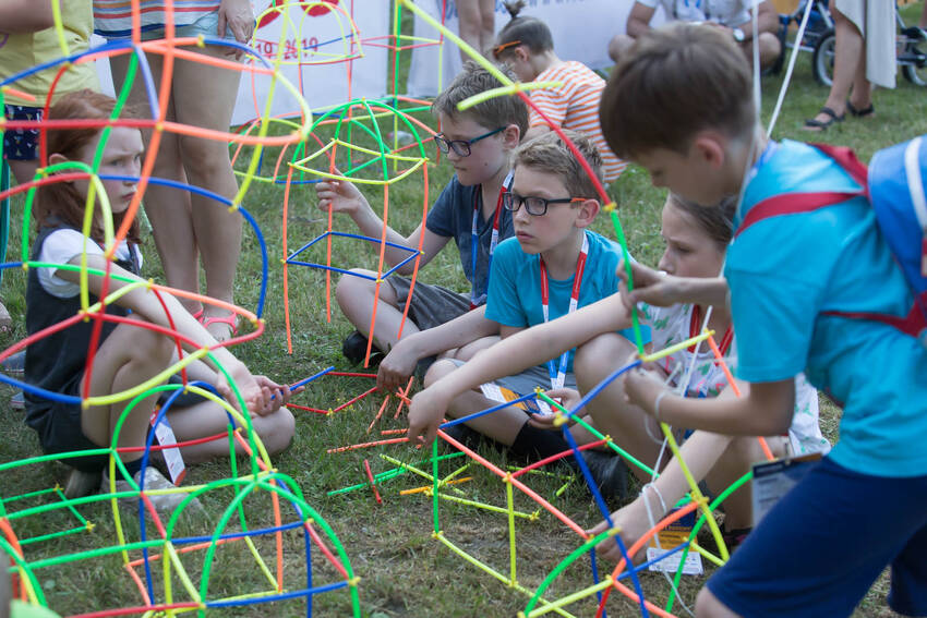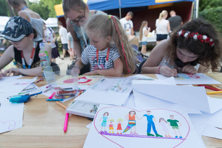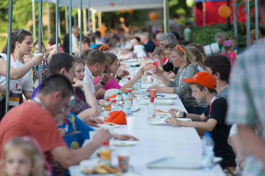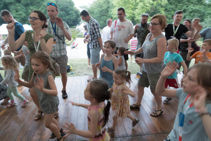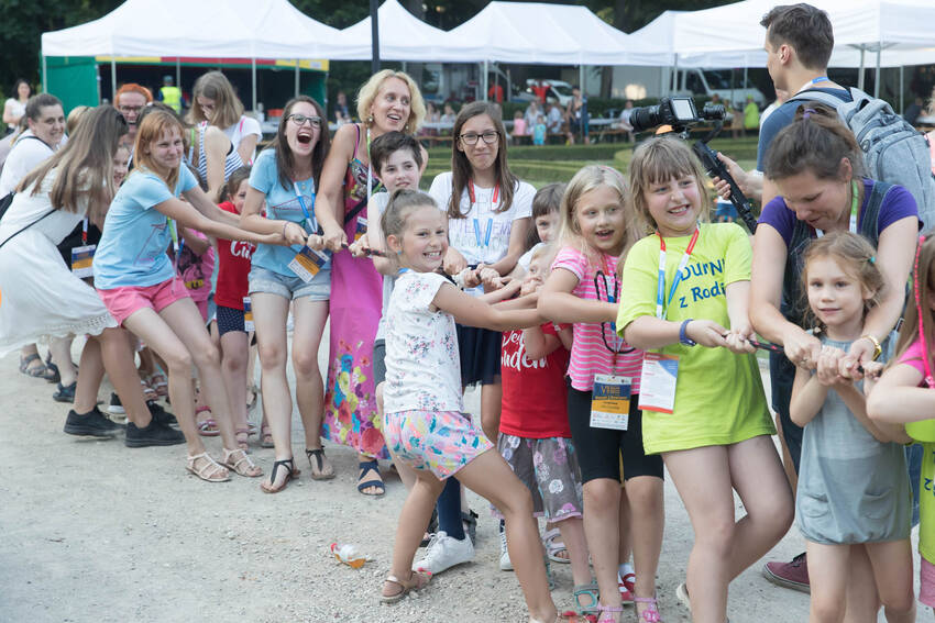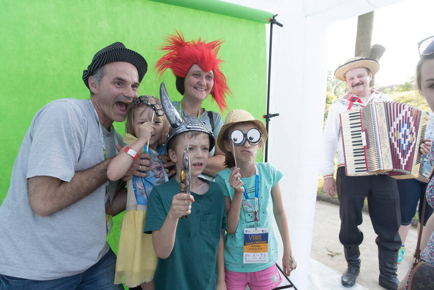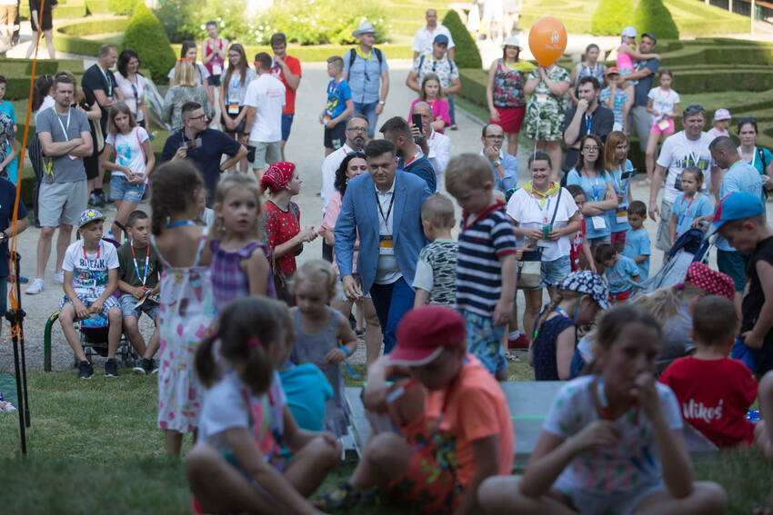 Nasz fotograf Paweł Kula przemierzył podczas Zjazdu Dużych Rodzin w Lubartowie setki kilometrów z profesjonalnymi aparatami, obiektywami i prawdziwą torbą fotografa-obieżyświata na ramieniu. Dotarł do wszystkich najważniejszych i tych mniej ważnych, ale sympatycznych momentów Zjazdu. Właściwie to obfotografował nam cały VII Zjazd Dużych Rodzin w Lubartowie: wielkie przygotowania, pakowanie pakietów, szykowanie recepcji, ustalanie warsztatów, świetnie zorganizowanych wolontariuszy, powitania uczestników, spotkania znajomych, oficjalne otwarcie Zjazdu i prawie wszystkie jego atrakcje. Ze zdjęć od razu widać, jak gorące było przyjęcie w Lubartowie, jak świetnie bawiliśmy się na pikniku w pałacowych ogrodach: były tańce, konkursy, występy i ... przepyszne pierogi, którymi Gospodarze uraczyli nas pierwszego wieczoru :)