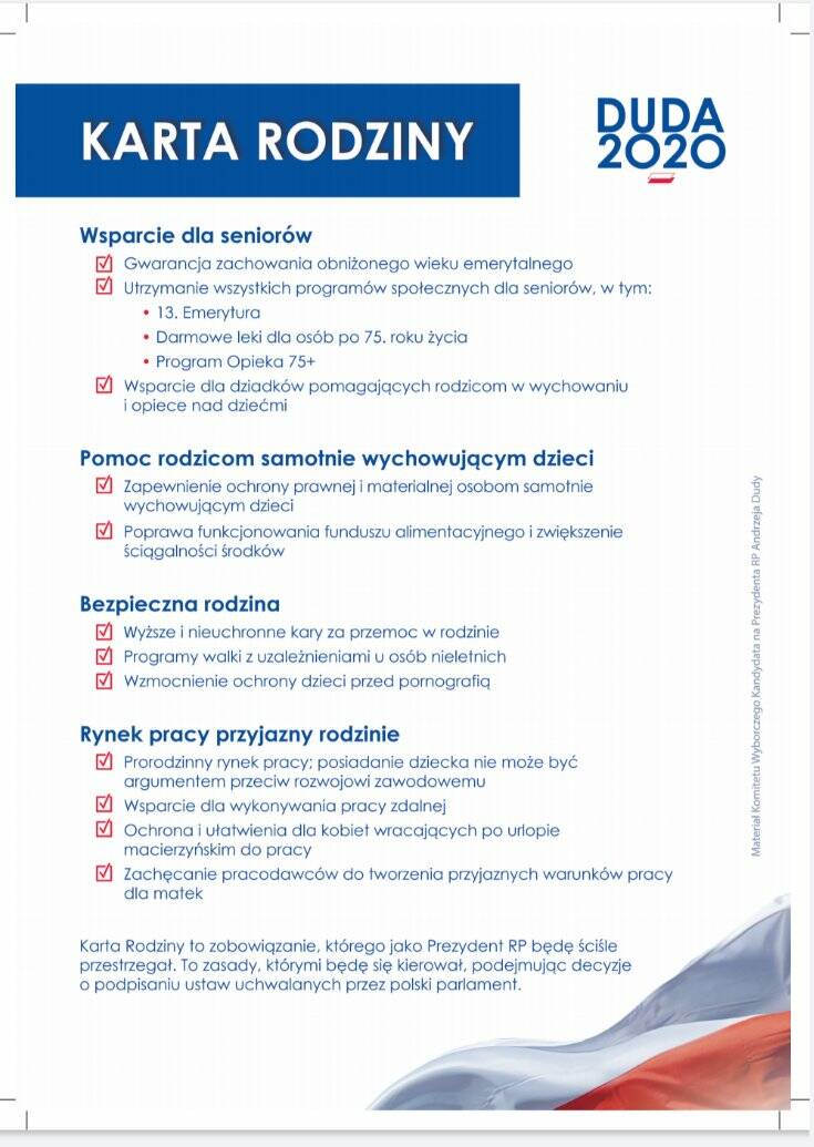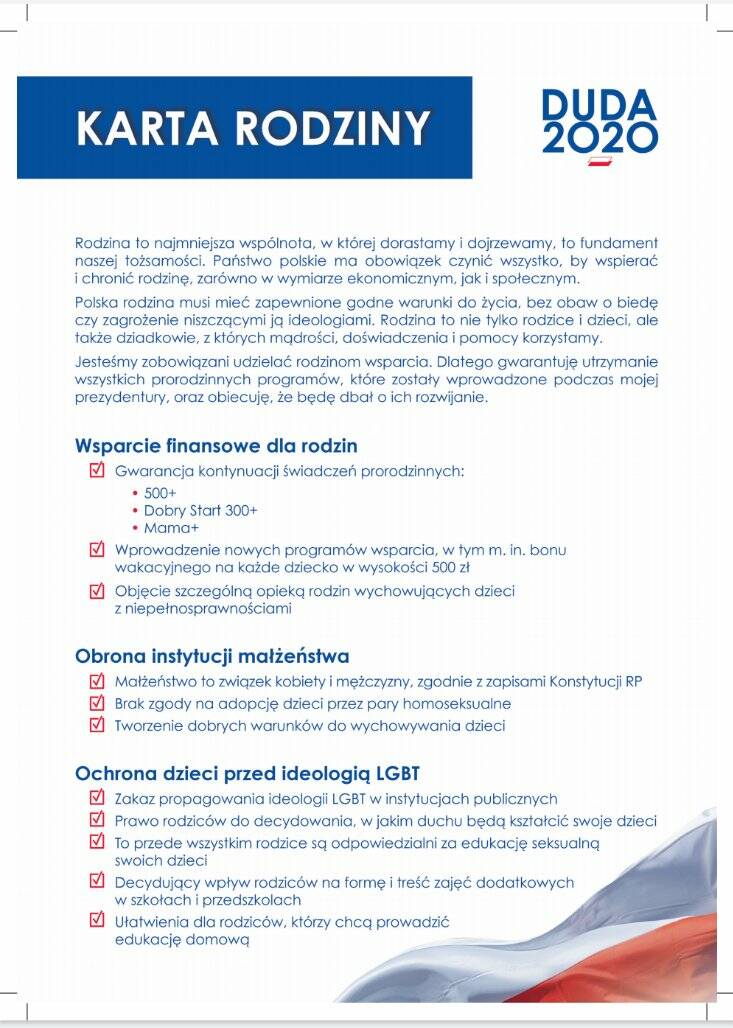 W dniu dzisiejszym prezydent Andrzej Duda podpisał deklarację programową nazwaną Kartą Rodziny.