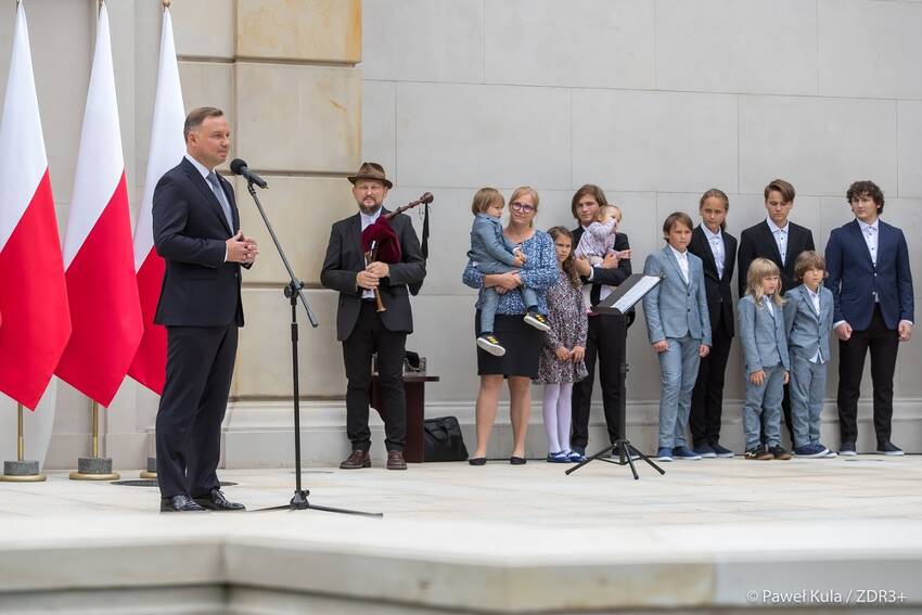 Prezydent Polski wyraził swój podziw wobec rodzin wielodzietnych. To niezwykle ważne z punktu widzenia państwowego, bo rodzina to fundament państwa – mówił Andrzej Duda. – Zwłaszcza takich, w których jest więcej dzieci, w których rodzice decydują się ponosić w większym stopniu trud wychowawczy. Podchodzę do tych rodzin z ogromnym szacunkiem – podkreślał prezydent.