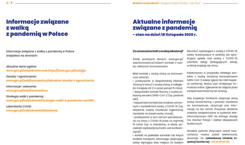 na uwadze troskę i dbając o dobro naszych rodzin, przygotowaliśmy poradnik dotyczący prawnych uwarunkowań związanych z pandemią. Zebrane w nim zagadnienia są odpowiedzią na zgłaszane przez Was problemy w ankiecie przeprowadzonej przez Związek Dużych Rodzin 3 Plus w październiku 2020 roku i dotyczącej sytuacji pandemicznej w Polsce.